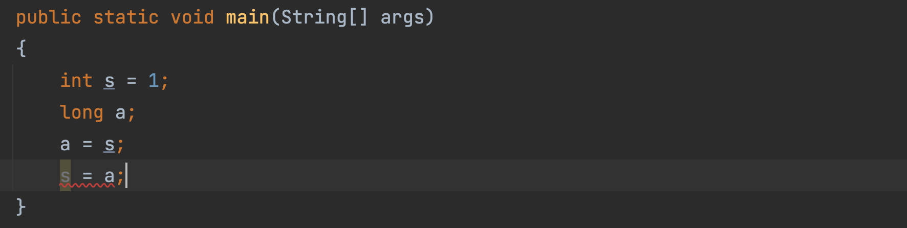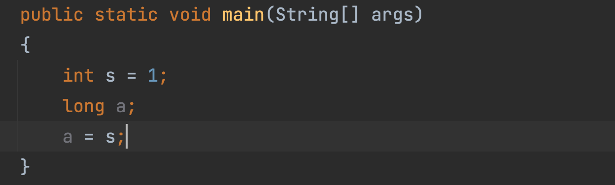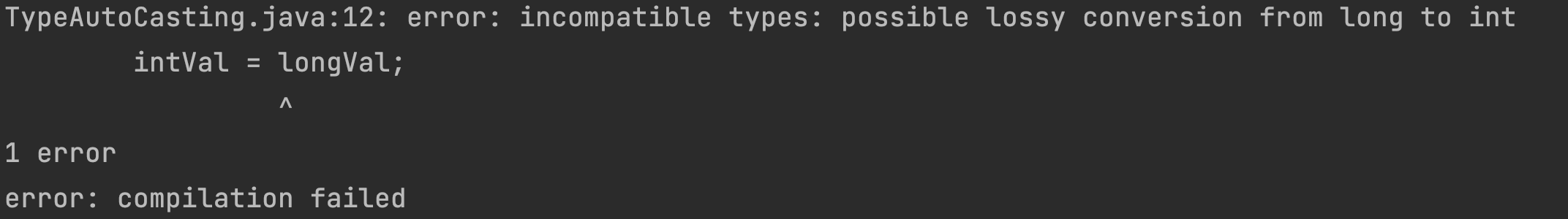 long(8byte) -> int(4byte) 더 작은집(타입)으로는 컴파일되지 않는다.