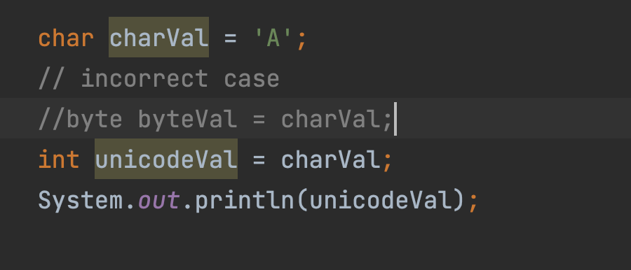 -128 ~ 127의 범위인 byte type은 auto casting을 막아두었습니다.
