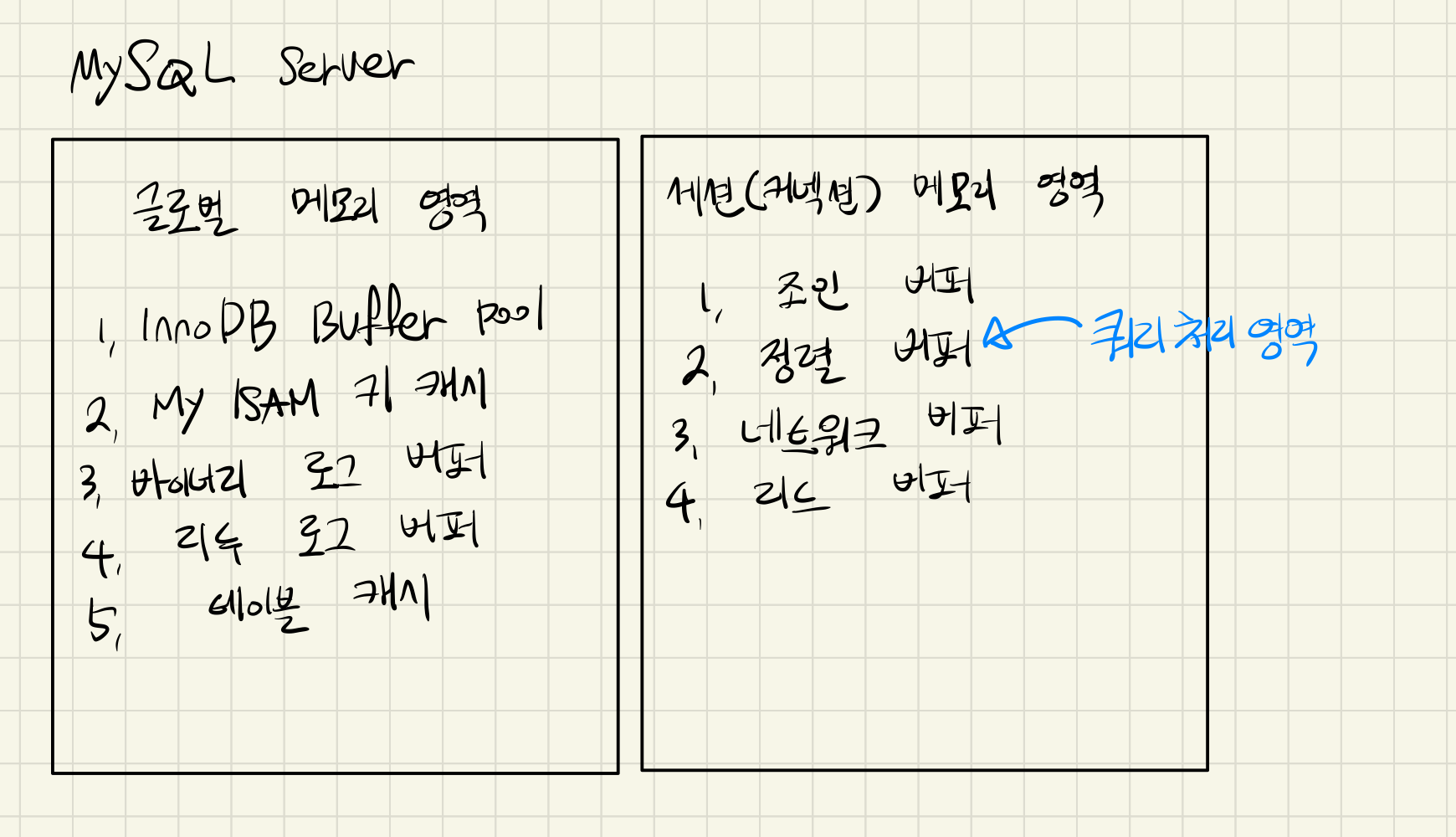 Mysql에서 사용되는 메모리 공간은 크게 global, local 2가지 영역으로 구분됩니다.