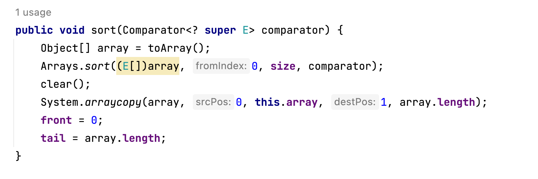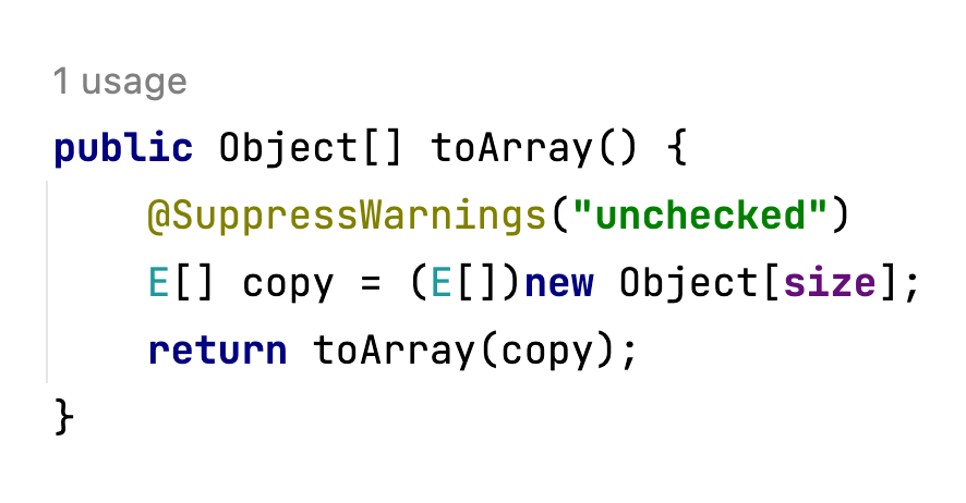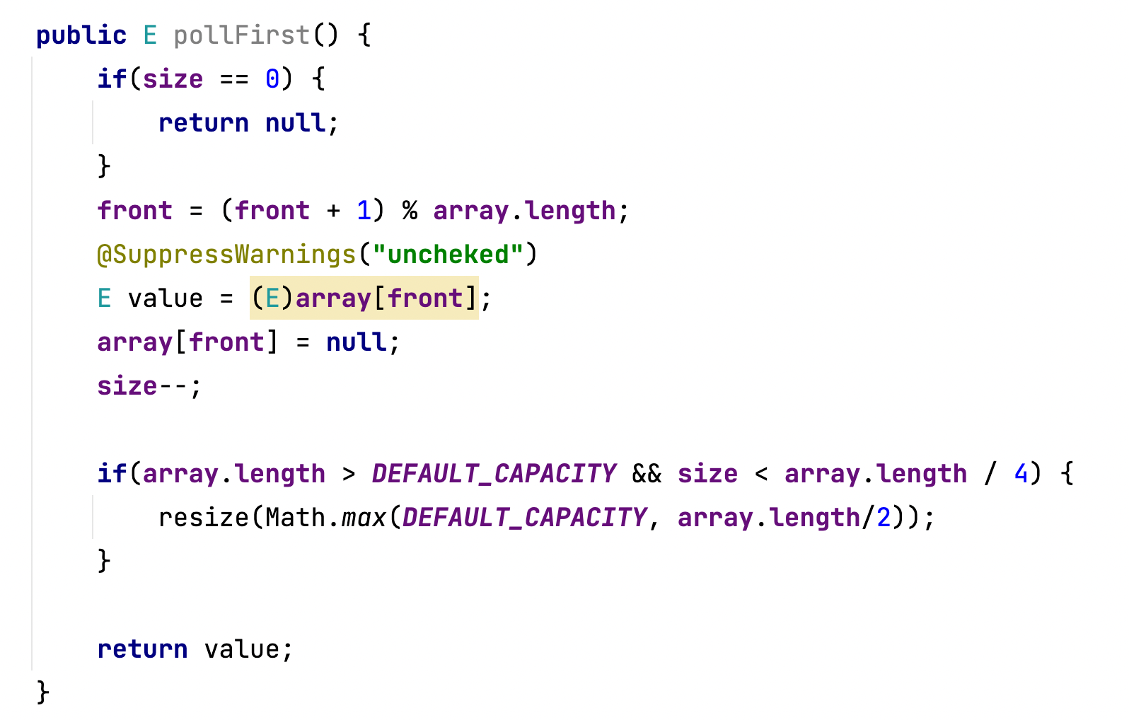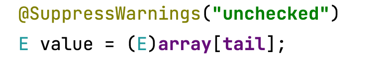 array가 Object배열입니다. 하지만 enque, deque연산에서 E type으로 받고 있으니
