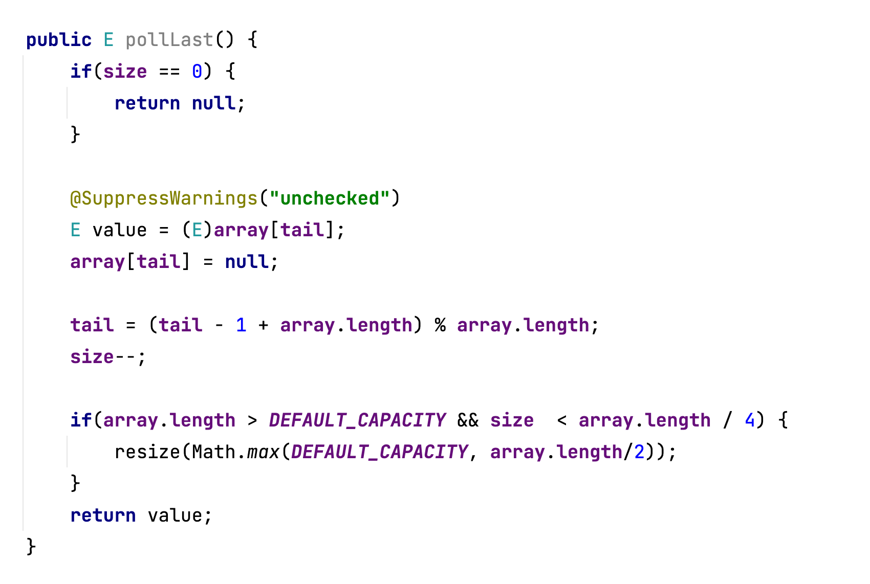 PollFirst()의 반대버전입니다. tail을 참조하여 deque연산을 합니다.