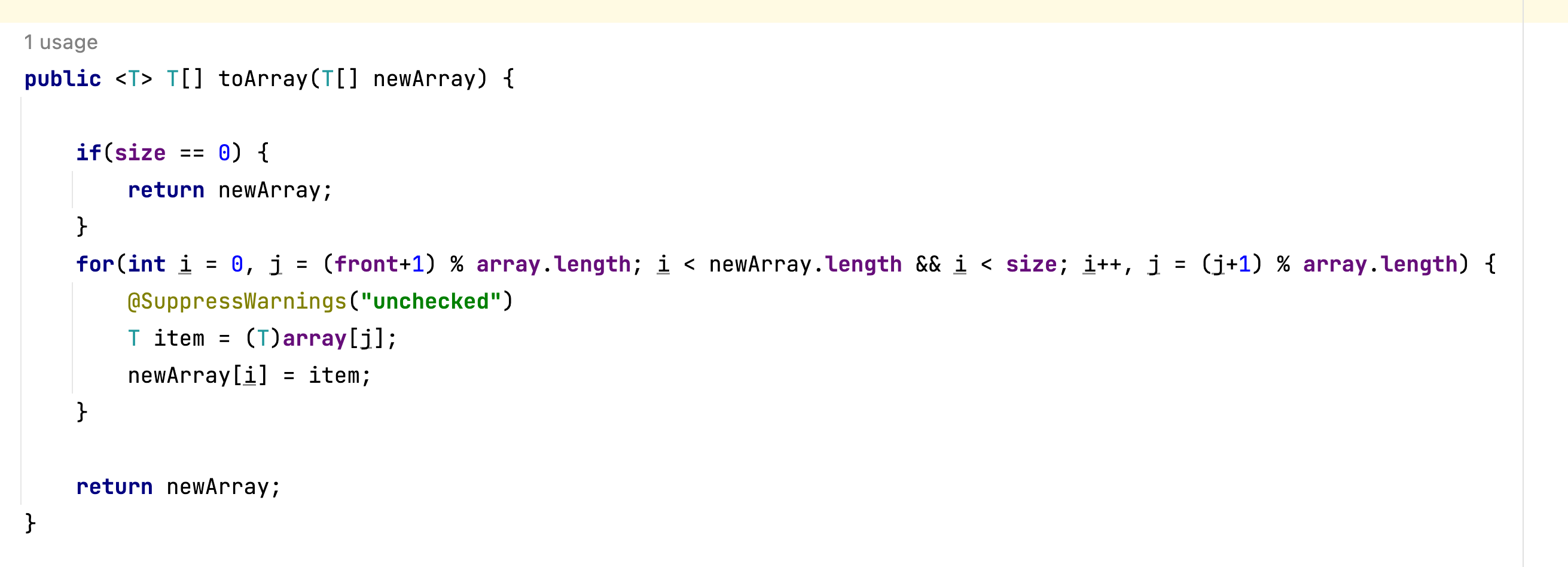 (front + array.length) % array.length;