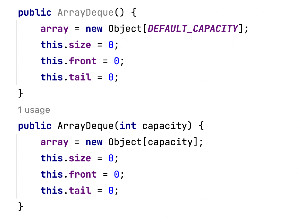이미 존재하는 배열을 받아 ArrayDeque의 배열을 넣어줍니다.