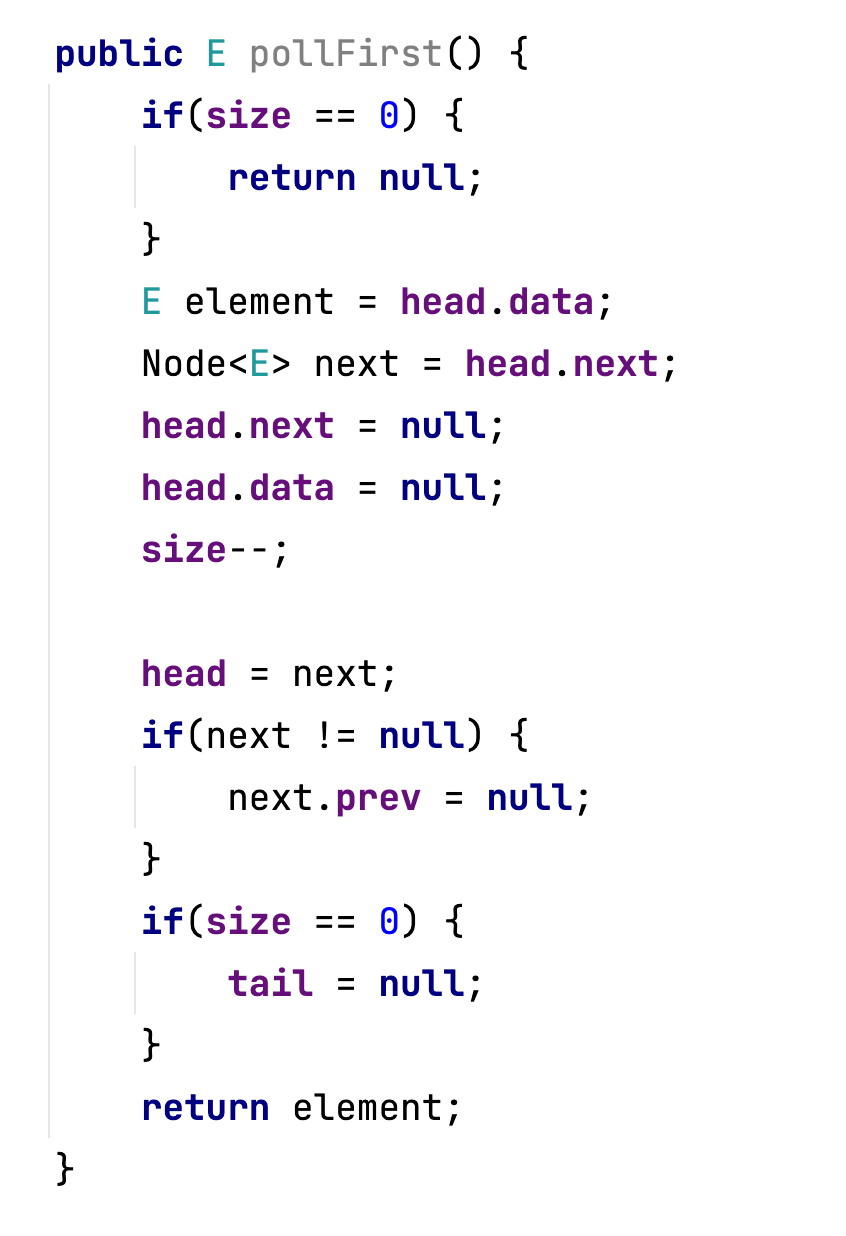 마지막으로 queue의 size가 0이라면 head도 null로 초기화합니다.
